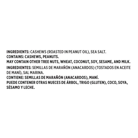 • Cashews , peanut oil and sea salt.