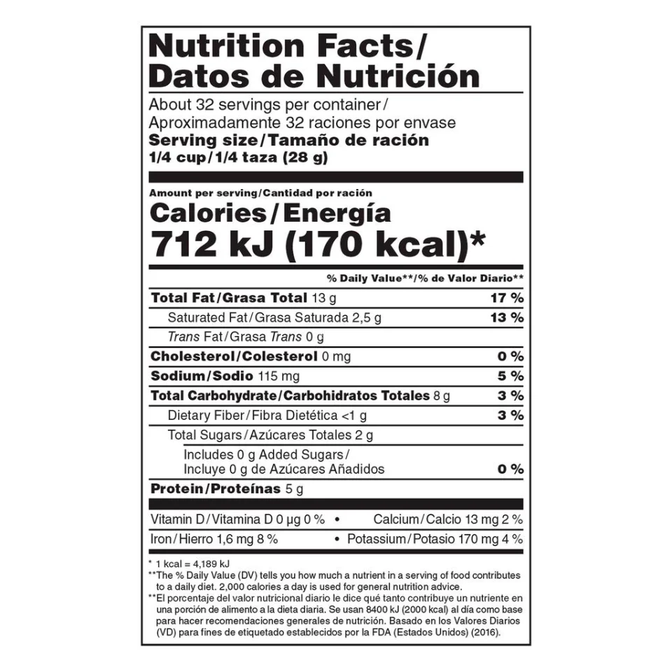 • Salted Roasted Cashews | Net Weight: 907 g / 32 oz | Roasting method: Lightly toasted in oil | Salty flavor | Crunchy texture | Recommended as a snack, for various recipes, baking, or savory preparations | Contains: Nuts | May contain: Tree nuts, wheat, coconut, soy, sesame, and milk | Made in the United States.