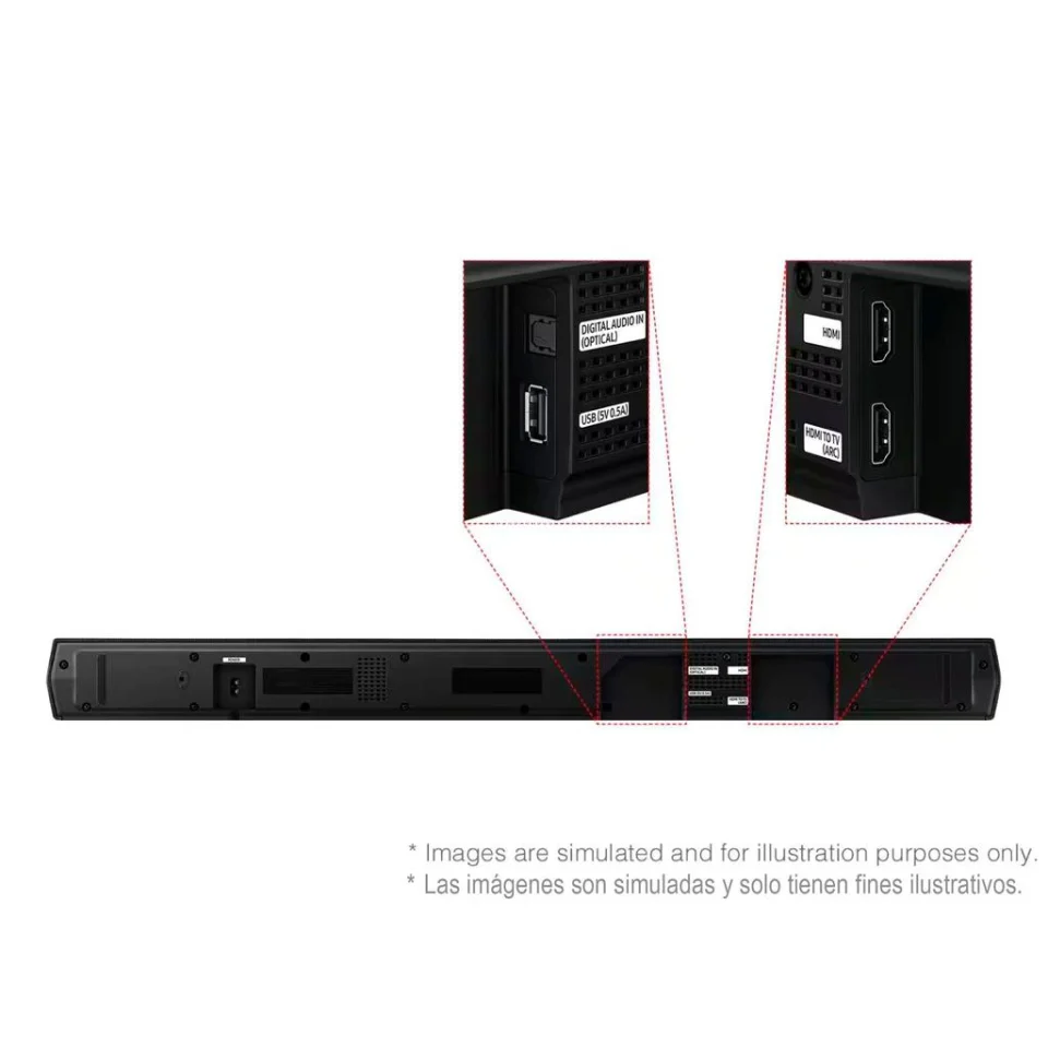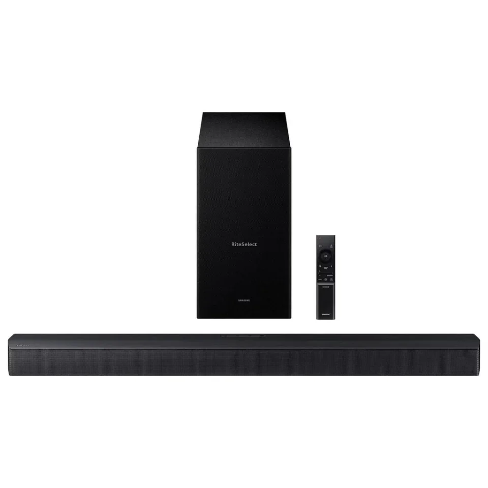 • The Samsung B Series soundbar is designed to deliver a more immersive and well-defined listening experience, adding greater depth and clarity to movies, series, video games, and music content. Its configuration allows for clearer dialogue and better-balanced sound effects, creating an immersive atmosphere that transforms the way home entertainment is enjoyed. The sleek design integrates easily into different spaces, complementing modern TVs without visual clutter, while its structure promotes even audio distribution throughout the room. Samsung’s sound processing technology optimizes each scene, achieving smoother transitions between bass, midrange, and treble.