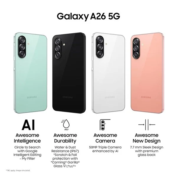 Powered by the Exynos 1380 processor and backed by 8GB of RAM, the Galaxy A26 handles everything from gaming to multitasking with ease. Plus, with 5G connectivity, you’ll stream, download, and connect faster than ever before.