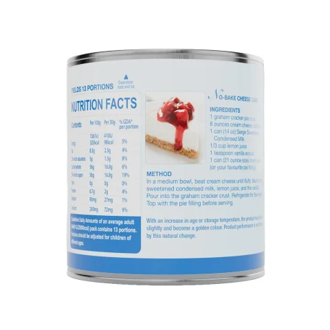 Delight your palate with Serge's Full Cream Sweetened Condensed Milk, the secret ingredient that will transform your drinks and desserts into irresistible delicacies. This pack includes 6 units, 385 grams each, perfect to have at hand in your kitchen whenever you need them. Serge, brand committed to quality and flavor, offers this Sweetened Condensed Milk, made with whole cream that gives it a soft and creamy texture