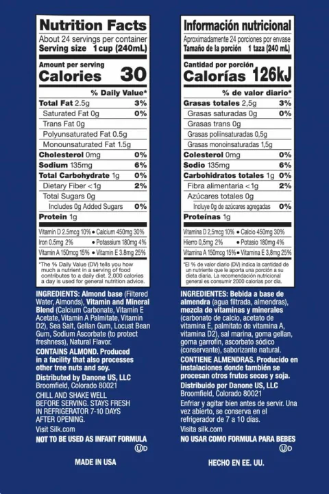 • Delicious whether poured over cereal, added to your favorite recipes, or enjoyed straight from the glass | Free of dairy, gluten, carrageenan, cholesterol, soy, artificial colors, and flavors. NON-GMO Project Verified, Vegan-Friendly. 30 calories per serving | Store at room temperature in a dry place and refrigerate after opening.