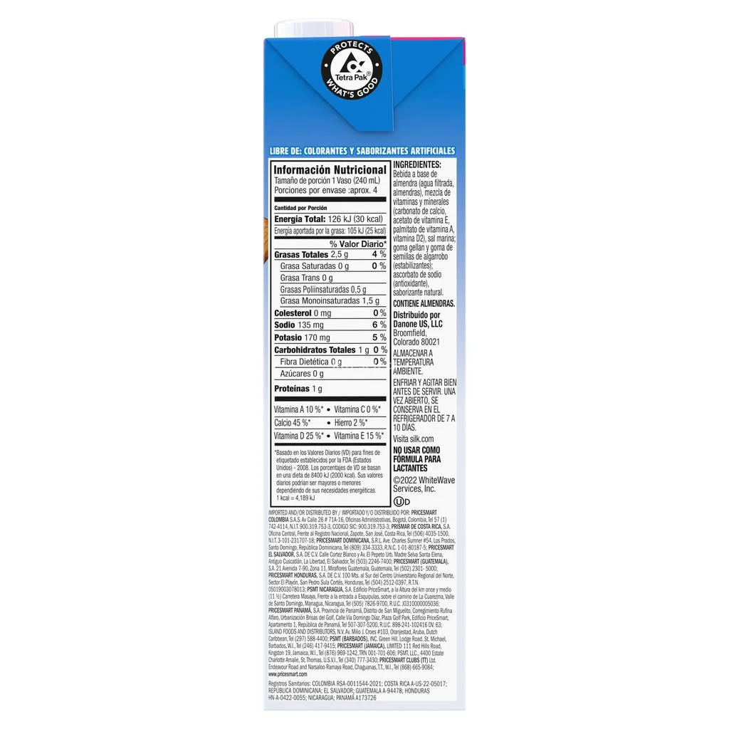 Delicious vanilla-flavored almond milk substitute without sweetener. Add it to your breakfast cereals, prepare delicious smoothies or enjoy it on its own. It contains no dairy products, gluten, carrageenan, cholesterol, artificial colors or flavors. It is an excellent source of calcium and antioxidant vitamin E.