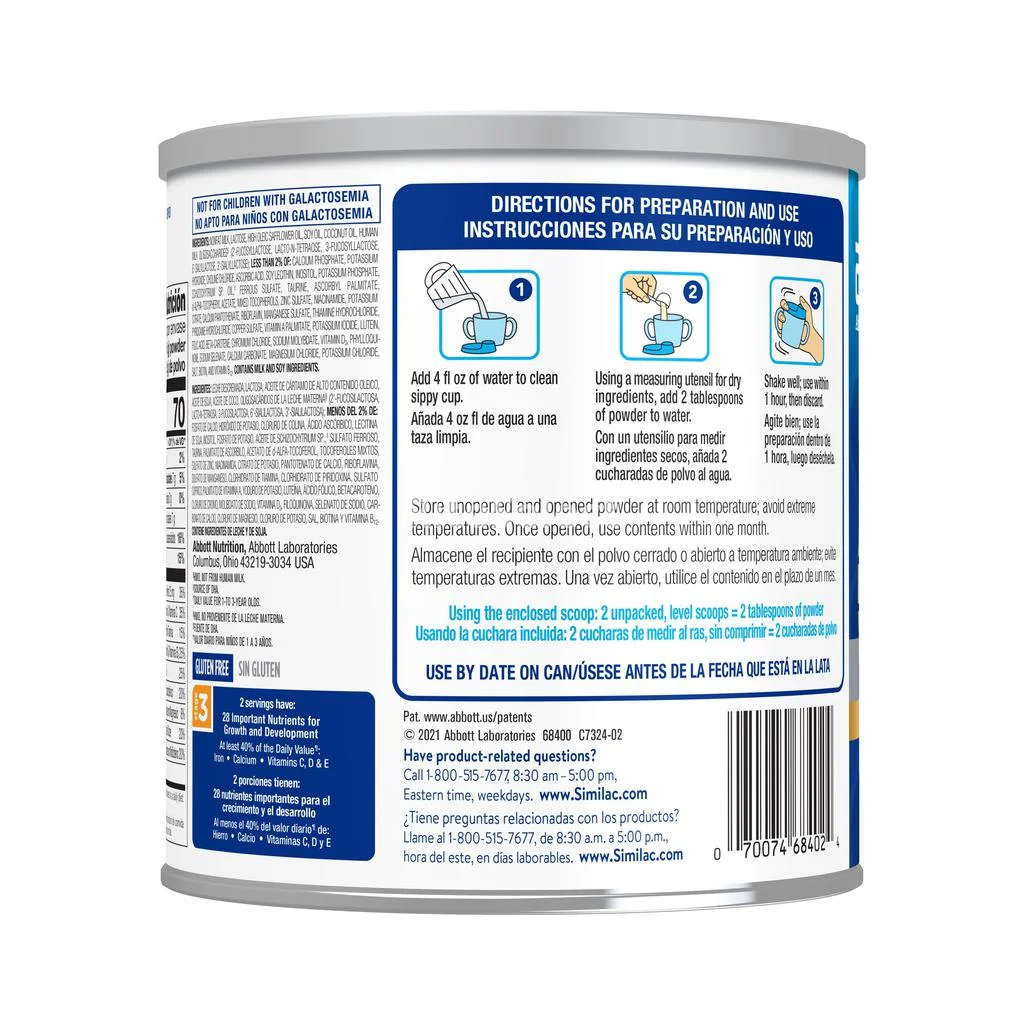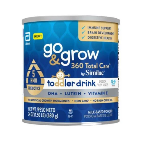Go & Grow Similac 360 Total Care is the first American nutritional drink for small children with 5 HMOs. HMO prebiotics favor digestive health and feed good gut bacteria, where 70% of the immune system is found. Two servings† contain 28 important nutrients for growth and development. Go & Grow 360 Total Care has our exclusive DHA blend for brain and eye development, lutein to support eye health and vitamin E to support developing cells. * IMPORTANT WARNING: Breast milk is the best food for infants. This supplemental food is not a substitute for breast milk. Hygiene and preparation instructions included on the label must be followed. Ask your doctor for advice.