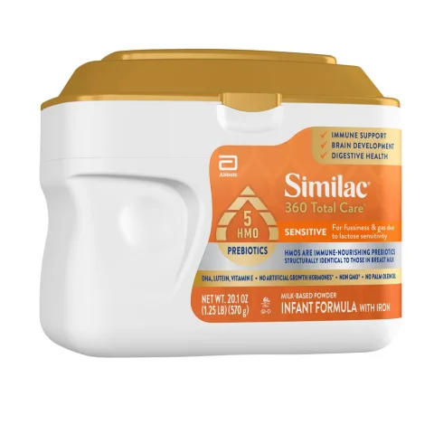 This formula contains an exclusive blend of 5 HMO prebiotics structurally identical to those found in breast milk and a nutrition designed for immune support, brain development and digestive health. Similac is the No. 1 brand in hospital diet. Similac 360 Total Care Sensitive has no artificial growth hormones† and no transgenic ingredients. * IMPORTANT WARNING: Breast milk is the best food for infants. This supplemental food is not a substitute for breast milk. Hygiene and preparation instructions included on the label must be followed. Ask your doctor for advice.