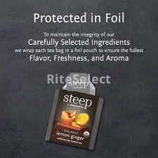 • Organic spicy ginger root and zesty citrus flavors create an infusion that invigorates the palate and pleases the senses. Steep a bag of this tea in a cup and enjoy its powerful and delicious flavor - it's ready in 4 minutes!