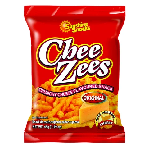 Contains 18 units of Chee Zees Crunchy Snacks of 45 grams each | Sunshine Snacks brand | Product made with real cheese, ideal to eat at any time of the day and easy to carry | Country of origin Trinidad and Tobago.
