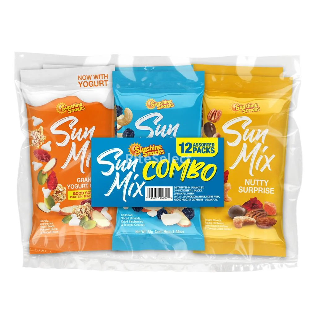 Have fun and enjoy the variety of flavors that this Combo Pack brings for you, Sunshine Snacks thinks of you and what you like the most, that's why within its variety you can find. The Nutty Surprise presentation: Inspired by nature and full of love, this decadent mix offers morsels of antioxidant richness, hazelnuts, almonds and more, it's the perfect afternoon snack. The Granola Crunch presentation: a healthy blend that includes protein, minerals and fiber and the Island Berry Coconut with the delicious touch of coconut chunks that combine into a unique blend. Practical and convenient to take to school, work or share at your social events.