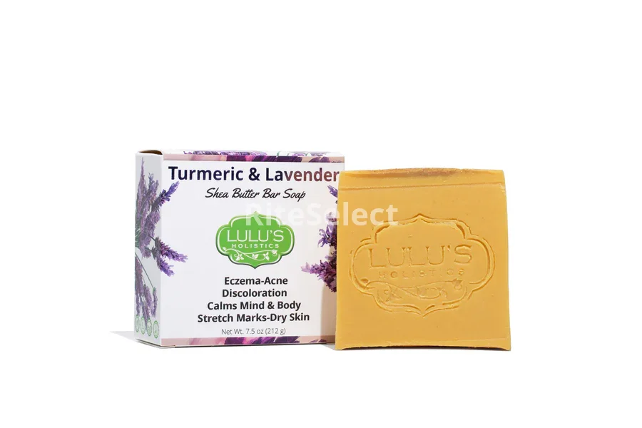 Soothe sensitive skin with our Turmeric and Lavender Essential Oil Shea Butter Bar Soap. This calming soap reduces inflammation, calms eczema, and fights bacteria with turmeric and lavender essential oil. Shea butter deeply hydrates, leaving skin soft and radiant.