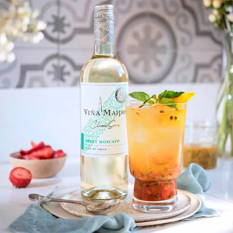 Bright light yellow, with a fruity aroma and marked floral notes, it is fresh, juicy, and persistent when tasted. An excellent wine to enjoy on its own or to pair with a variety of dishes. Maipo Sweet Blanco is ideal with cold appetizers, brie or camembert cheese, seafood dishes, and creamy desserts. This wine comes from clay and granitic soil with low organic content, providing low fertility and good drainage. Semi-arid climate with maritime coastal influence and prolonged dry season. Serving temperature 8 - 10°C.