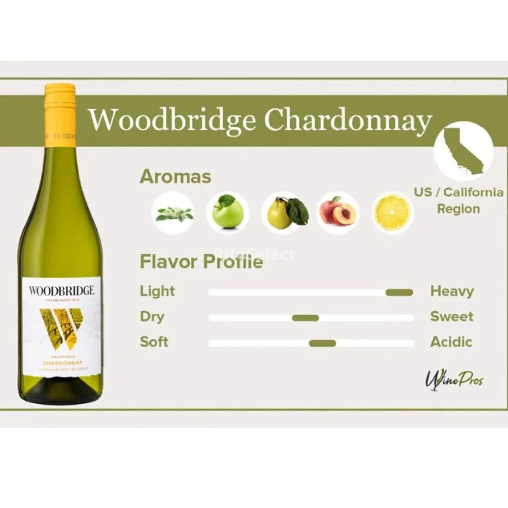 Woodbridge is a medium-bodied white wine, made from Chardonnay grapes. It features aromatic tropical fruit notes combined with cinnamon and maple nuances, with a soft and toasted finish resulting from its oak aging. It is produced by controlled fermentation and partial aging in barrels to enhance its complexity.